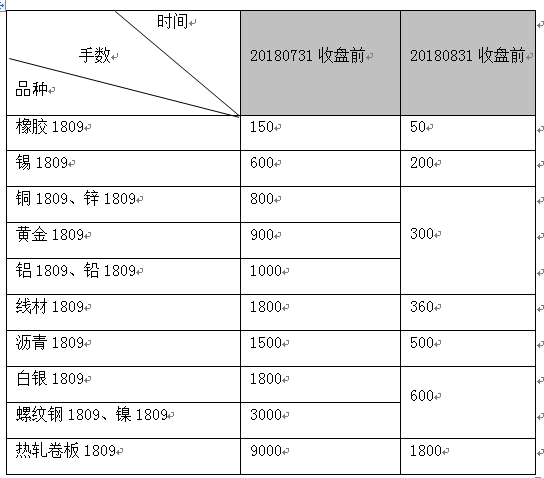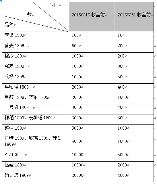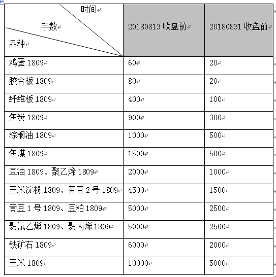 注:大商所、鄭商所自然人客戶1809合約持倉不允許進(jìn)入交割月,