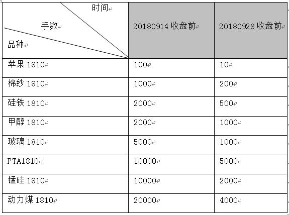 根據(jù)各交易所限倉(cāng)規(guī)定,大商所、鄭商所自然人客戶1810合約持倉(cāng)不允許進(jìn)入交割月,上期所自然人客戶1810合約持倉(cāng)符合整數(shù)倍要求可進(jìn)入交割月?,F(xiàn)將1810合約限倉(cāng)提示如下: