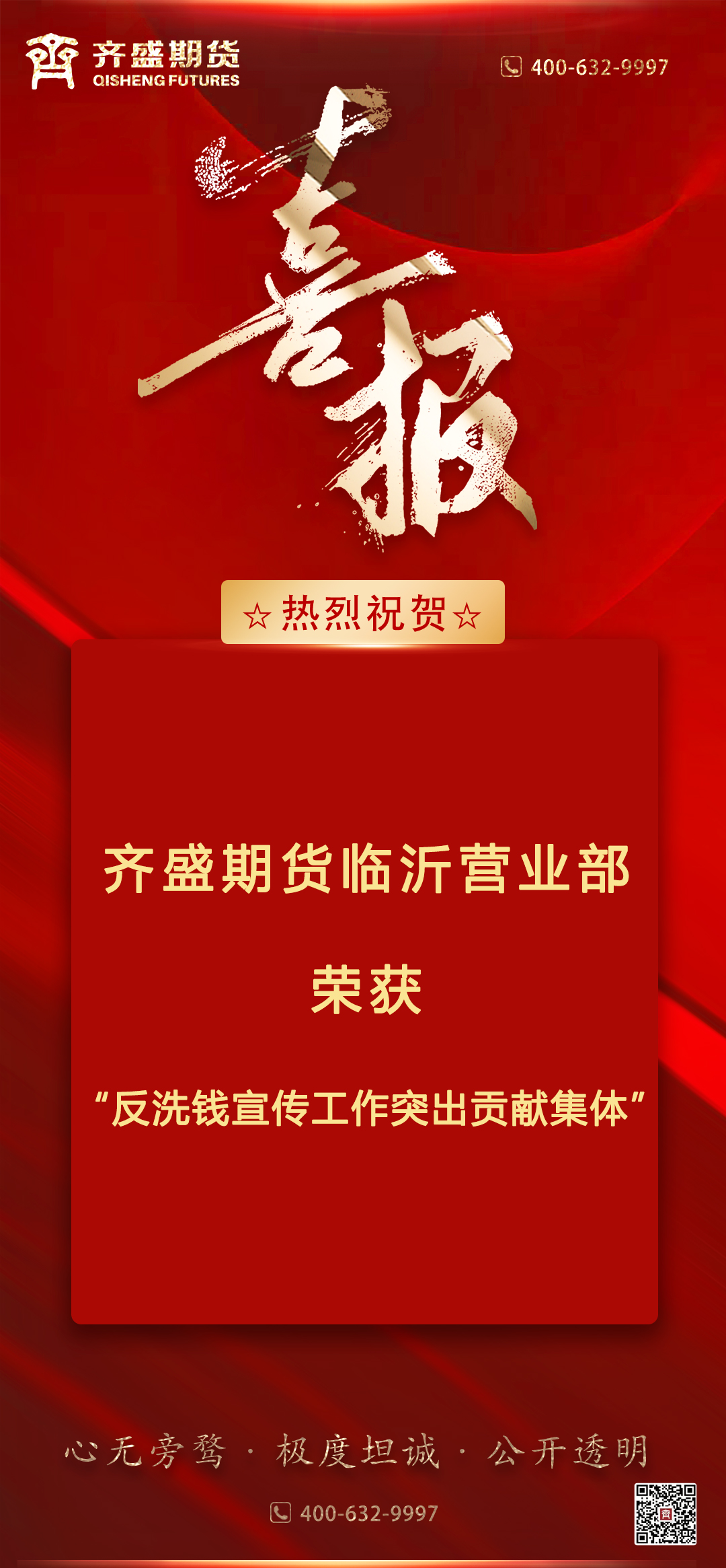 熱烈祝賀齊盛期貨臨沂營(yíng)業(yè)部榮獲“反洗錢(qián)宣傳工作突出貢獻(xiàn)集體”