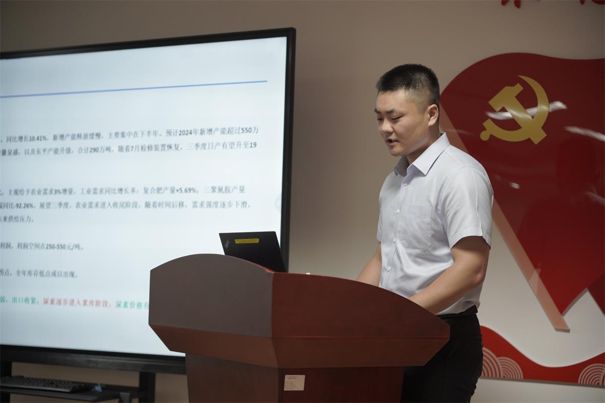 會議伊始,齊盛期貨董事長邢成亮致辭講話,首先對到場的嘉賓表示最由衷的感謝和最熱烈的歡迎,并詳細介紹了公司歷史沿革、股東背景及業(yè)務(wù)發(fā)展情況。他強調(diào),齊盛期貨將持續(xù)展現(xiàn)國企擔當,始終堅持以服務(wù)實體經(jīng)濟為宗旨,為實體企業(yè)發(fā)展持續(xù)賦能期貨力量。隨后齊盛期貨尿素研究員康見對當前尿素市場的基本面進行了全面而深入的剖析,涵蓋了供需態(tài)勢、價格變動趨勢、政策導(dǎo)向等多個方面,為與會企業(yè)提供了豐富且詳實的市場信息。