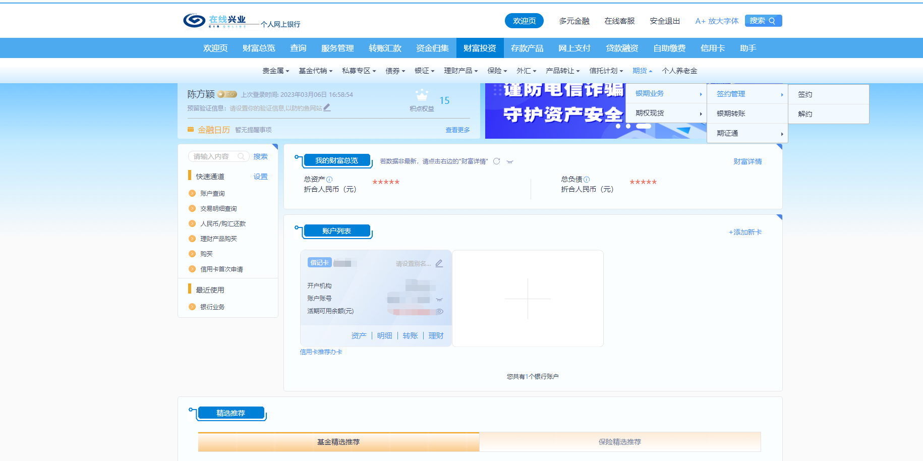 均在在“財富投資”-“銀期業(yè)務(wù)”-“簽約管理”-“解約”通道下進行操作。
