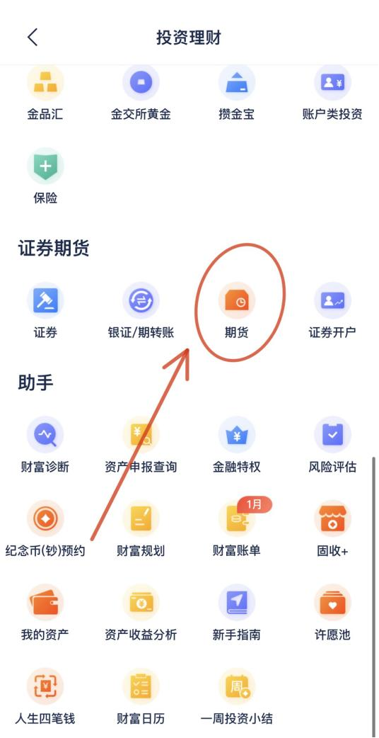 下拉菜單“證券期貨”,找到“期貨”